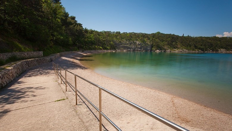 Šljunčana plaža s lijepim ulazom u more, u čijoj se pozadini nalazi dječje igralište i obilje hladovine. Nalazi se izvan centra Opatije pa pruža više mira i spokoja za svakoga tko se želi dobro odmoriti.